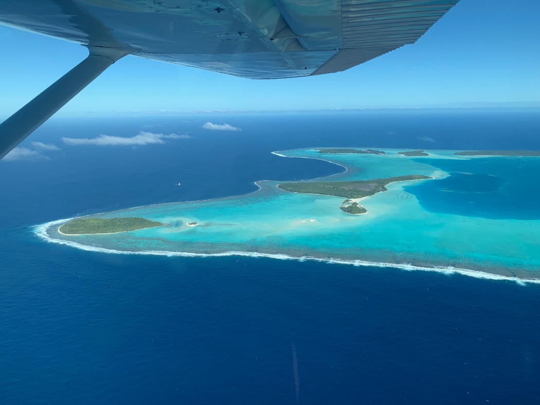 Each island offers spectacular views: turquoise lagoons, white sandy beaches, lush green mountains, and stunning coral reefs from above.